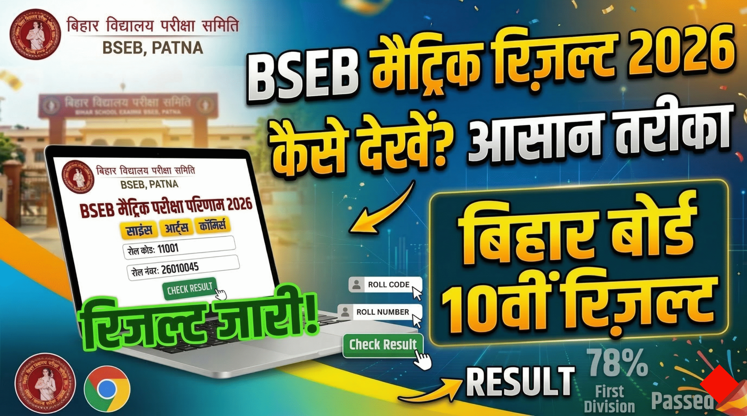 वैसे छात्र-छात्रा जो 2026 मे मैट्रिक/दशवी/10th का Annual परीक्षा दिए है जो परीक्षा 17 फरवरी से 25 फरवरी 2026 तक चली थी, अब उनका परीक्षा परिणाम/ Result जारी हो चुका है जिसे आप मेरे वैबसाइट से बिलकुल आसानी से एक क्लिक मे चेक कर सकते है|