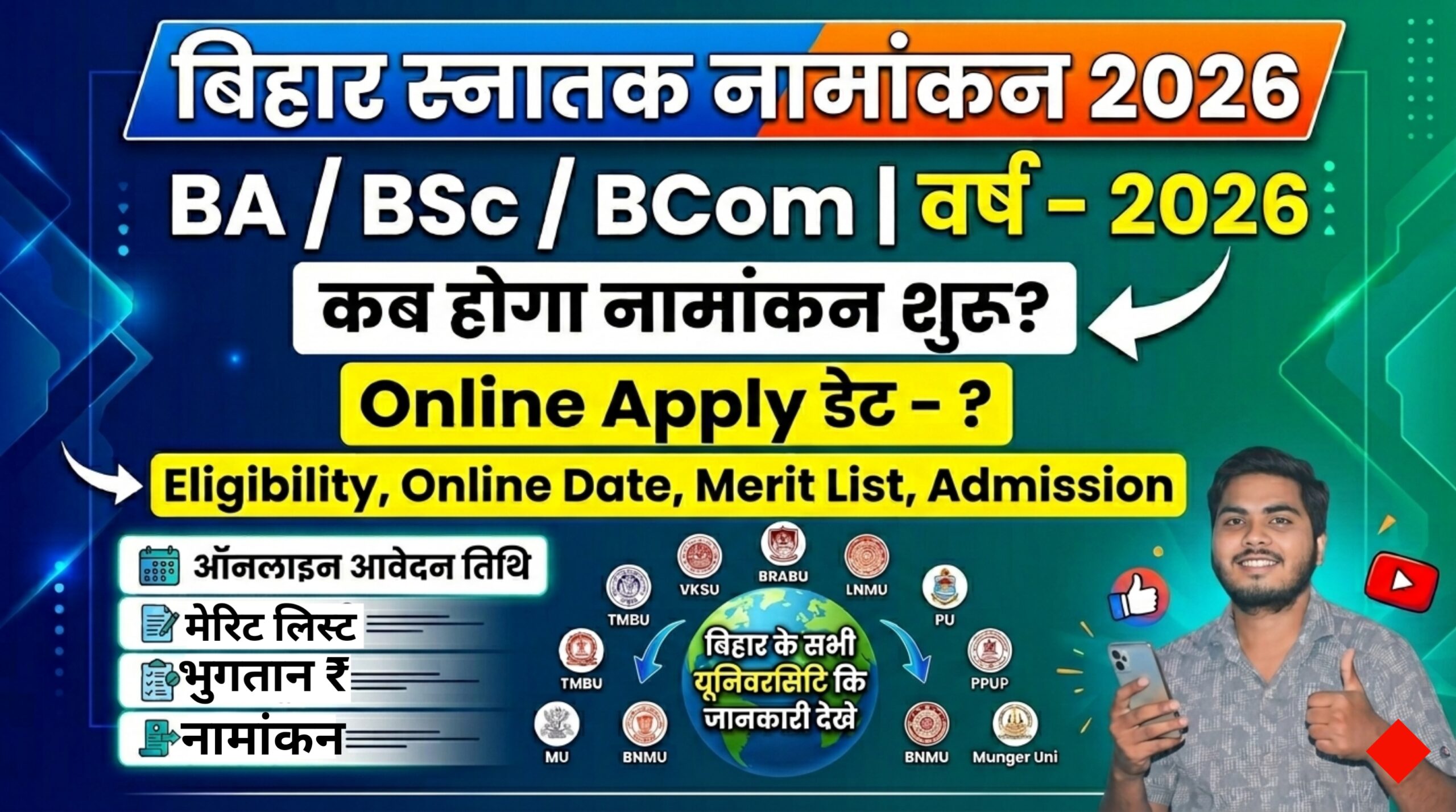 बिहार के सभी विश्वविद्यालयों में शैक्षणिक सत्र 2025-26 के लिए स्नातक (BA, BSc, BCom) और वोकेशनल कोर्सेज (BBA, BCA) में नामांकन की प्रक्रिया जल्द शुरू होने वाली है। अगर आपने 2026 में इंटरमीडिएट पास किया है,