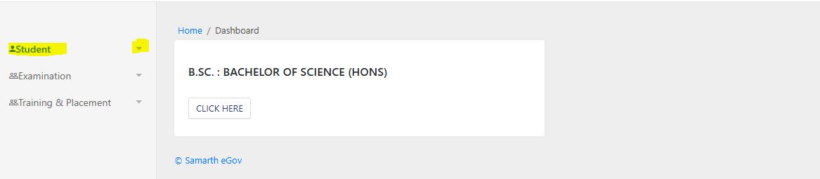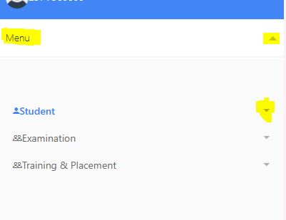 पहले Menu पर क्लिक करे फिर Student विकल्प के सामने तीर पर क्लिक करें (Mobile पर कर रहें छात्रों के लिए)