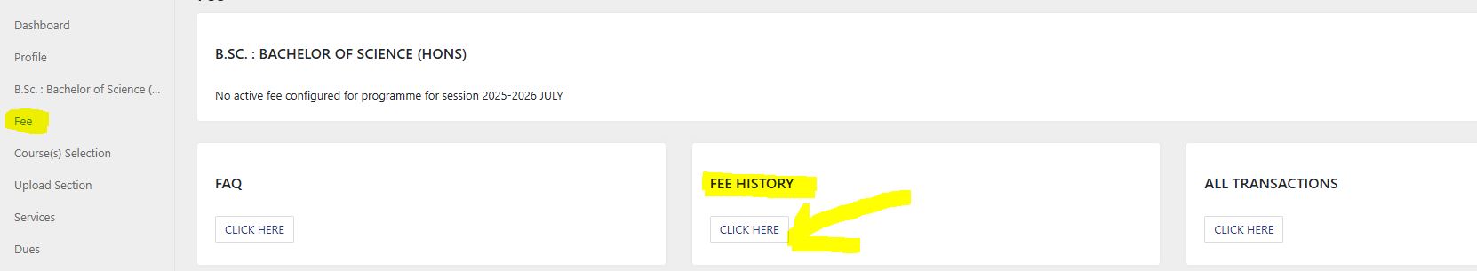 स्टेप 5- उपर बताएं गए अनुसार Fee History पर क्लिक करे और दाएँ तरफ print का विकल्प से download करें|